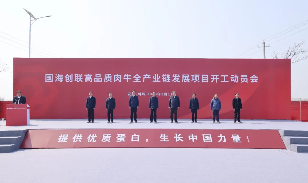 3月11日上午,國海創(chuàng)聯(lián)高品質肉牛全產業(yè)鏈發(fā)展項目開工動員會在懷遠縣舉行。副省長張曙光宣布項目開工,市委書記黃曉武致辭,省政府副秘書長金宗順,省農業(yè)農村廳廳長汪學軍,省農墾集團總經理張其廣,省農業(yè)農村廳副廳長湯洋,國海創(chuàng)聯(lián)實業(yè)集團有限公司董事長閆濤,國家肉牛牦牛產業(yè)技術體系首席科學家曹兵海,市領導王慶武、吳永彬、喬樹偉,淮北市、亳州市、宿州市、阜陽市、淮南市、滁州市、六安市政府分管負責同志出席。蚌埠國控集團黨委書記、董事長陳建功和集團黨委副書記、副董事長、總經理劉冰參加動員會。