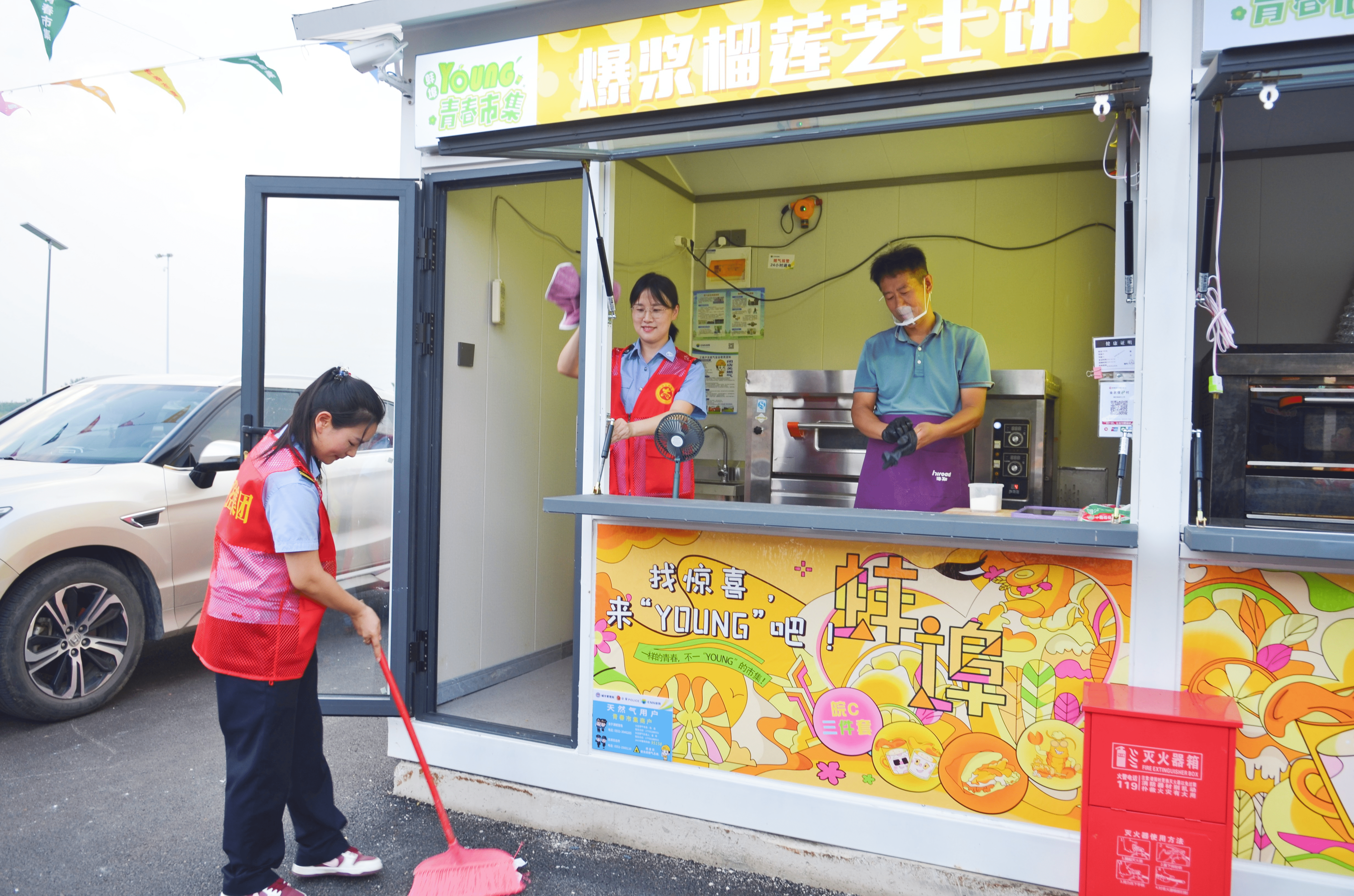為確保市集運(yùn)營(yíng)前期秩序井然、服務(wù)到位,集團(tuán)共招募70名志愿者,幫助引導(dǎo)咨詢(xún)、秩序維護(hù)、環(huán)境衛(wèi)生、應(yīng)急協(xié)助等。集團(tuán)員工積極報(bào)名,特別是勞模于瑞青、楊苗苗、李丹等主動(dòng)參加,帶動(dòng)示范,為青春市集開(kāi)業(yè)運(yùn)營(yíng)貢獻(xiàn)力量,為文旅市集在市民體驗(yàn)上更增添了一份溫暖。
