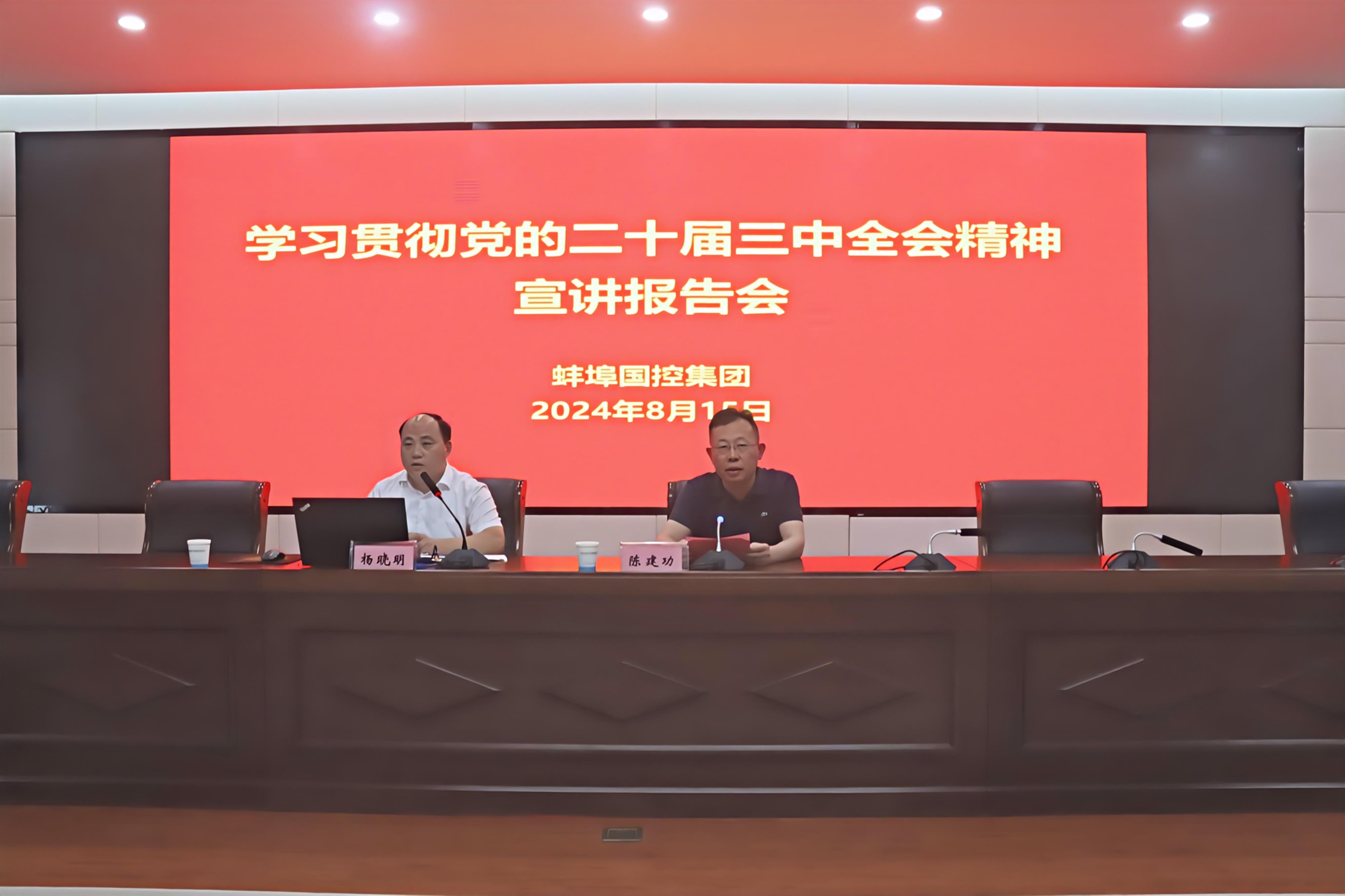 為認真學習宣傳貫徹黨的二十屆三中全會精神,推動落實國有企業改革發展新任務新要求,8月15日下午,市國控集團舉辦學習貫徹黨的二十屆三中全會精神宣講報告會,會議邀請市委副秘書長、市委政研室主任楊曉明作主題宣講,集團黨委書記、董事長陳建功主持會議并講話。集團領導班子成員、部門負責人,所屬子公司領導班子成員和基層黨組織書記代表共計88人參加會議。