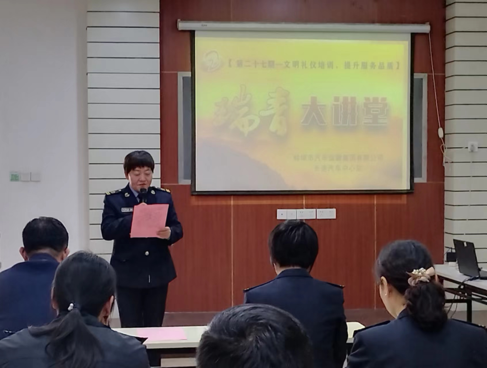 為弘揚瑞青精神,建設瑞青品牌,創新服務舉措,提升服務質量,汽運集團長途汽車中心站舉辦了第二十七期瑞青大講堂服務禮儀篇——“提升服務質量?做文明汽運人”。