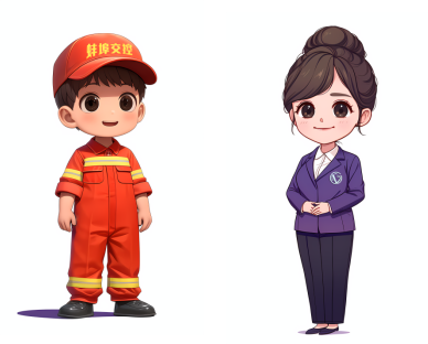 “小安”“小微”是“平安微笑蚌固路”文化品牌下的衍生形象,寓意平安與微笑,代表著S101省道蚌固路平安出行與窗口微笑服務(wù)。“小安”穿著橙色的公路養(yǎng)護(hù)工裝,干練且富有活力。“小微”身著藍(lán)紫色職業(yè)裝,胸前佩戴“平安微笑蚌固路”胸章,專業(yè)且溫和。
